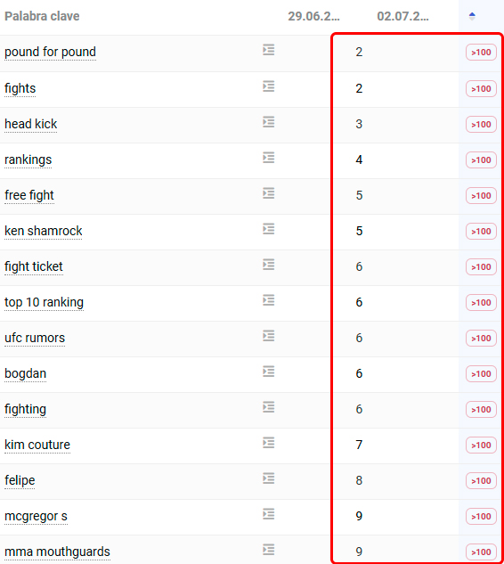 Pero es que aún hay más. Si filtramos solo por las desaparecidas (es decir, no salir ni en el TOP100)… quedan 1.139. Es decir, el 80% de búsquedas es que se evaporan.